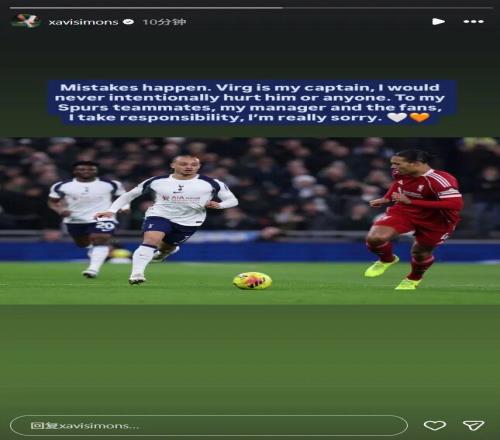 然而,前天空体育主持人、现任talkSPORT主持人的斯特林并不打算为这位22岁的球员说话。一位球迷表示为西蒙斯感到难过,斯特林在X上回应道:“为他感到难过?那动作很愚蠢,是故意的,绝非意外,他让球队失望了。对热刺来说,这是一笔糟糕的签约。”